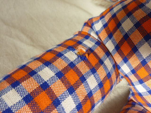 ぎっしり綿が詰まっているため、布が引っ張られて縫いあわせの部分が緩んできている箇所があります。 ⇒股、左足内側、左足かかと。