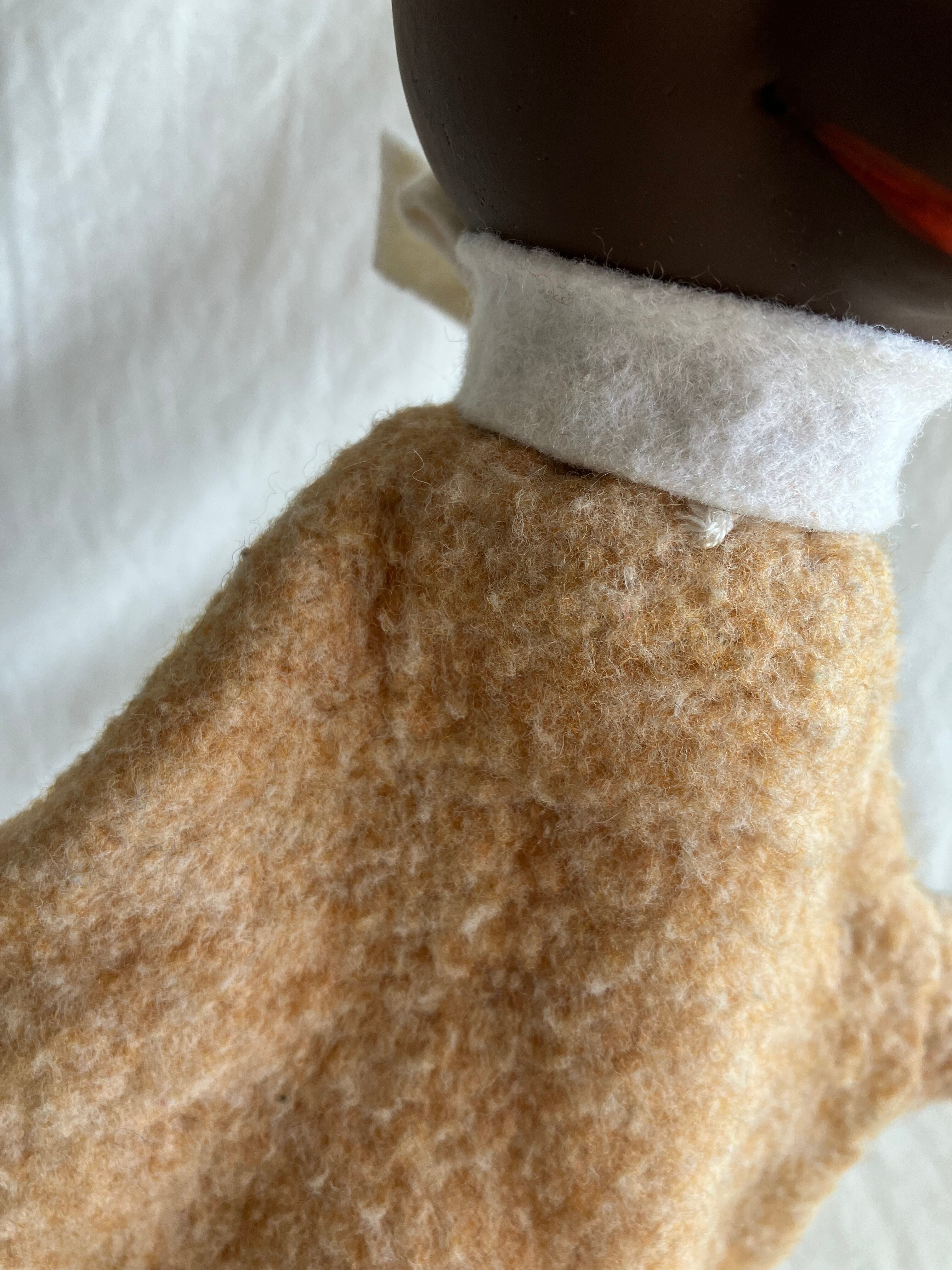 素材:首元のリボンはフェルト、胴は毛布のような起毛生地、頭部はソフビ