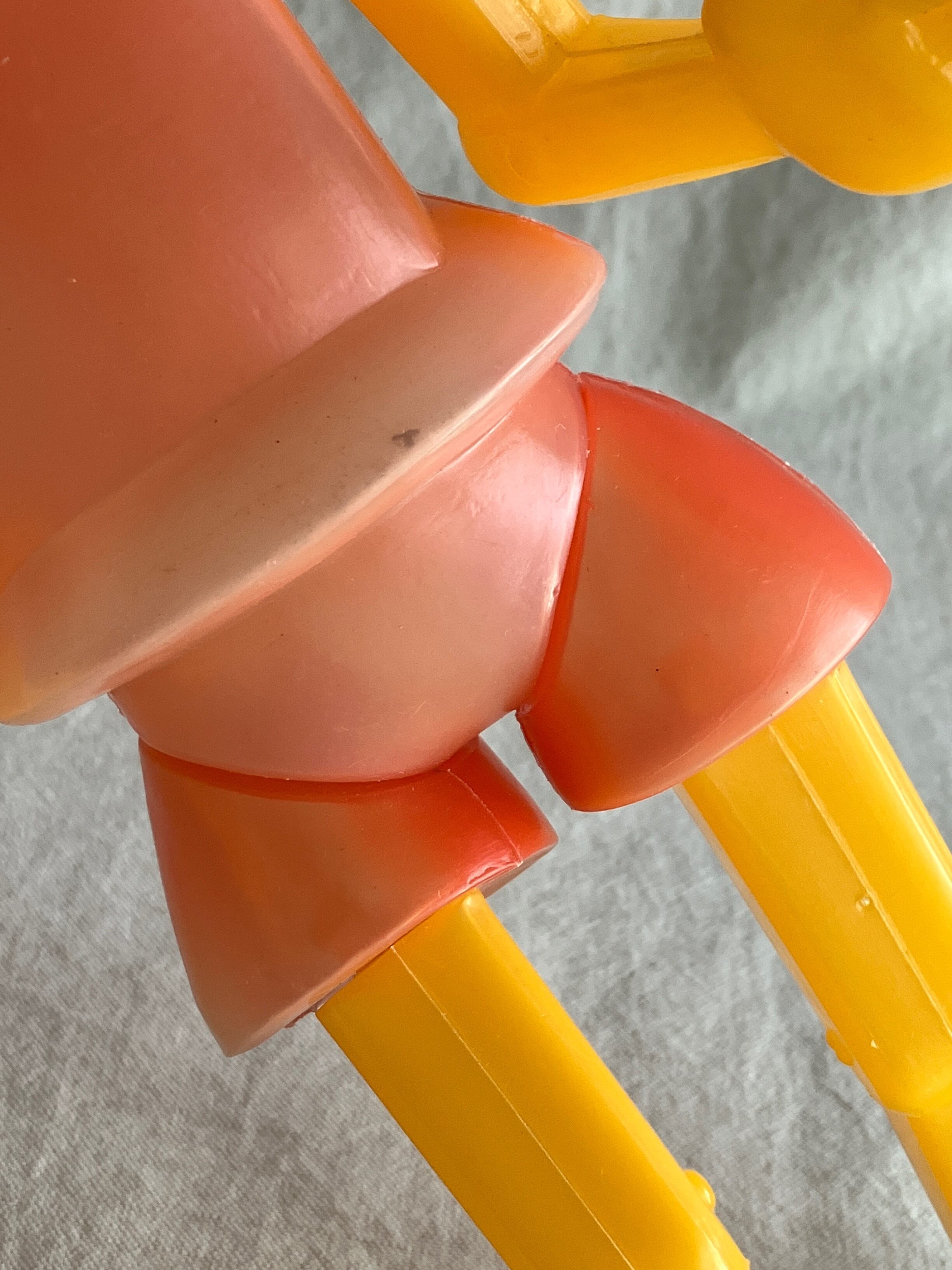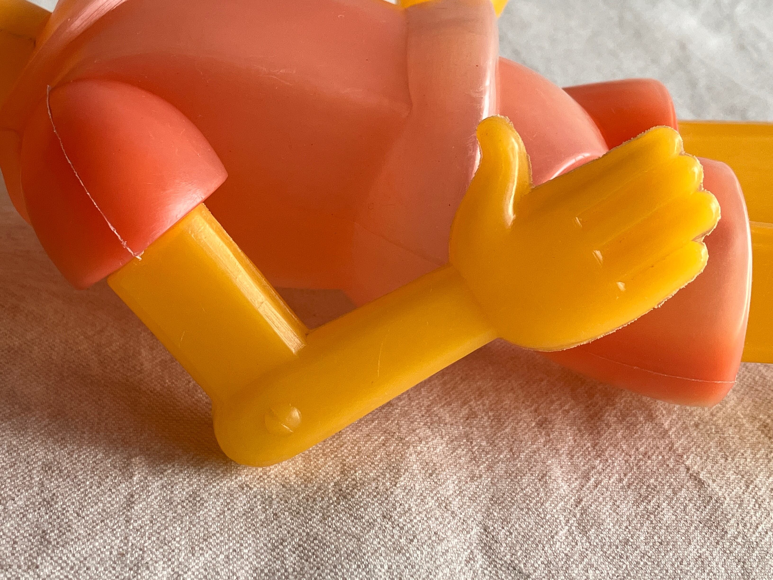 こちらのプラスチックのキャラクター人形はコレクターが多く、年々見つけにくくなっています。帽子をかぶったタイプは珍しいです。